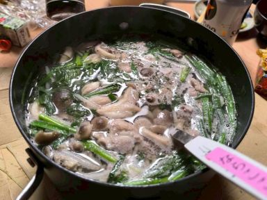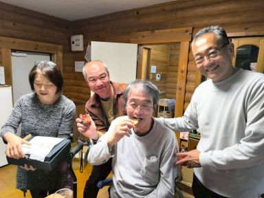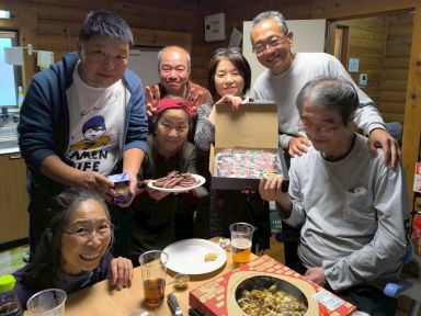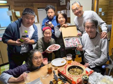 森、高秀の差し入れはお肉↑ 新井の差し入れ(柿ジャム、クラッカー、味噌玉) 夕食の鍋